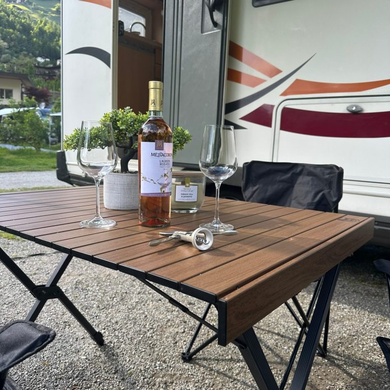 - Klappbarer Tisch in Holzoptik (bis zu 6 Personen)